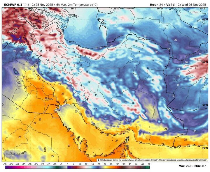 ضیائیان بیان کرد: امروز (چهارشنبه، ۵ آذر) در نوار شمالی کشور و روز پنجشنبه (۶ آذر) در شمالشرق، روند کاهش نسبی دما مشاهده خواهد شد.