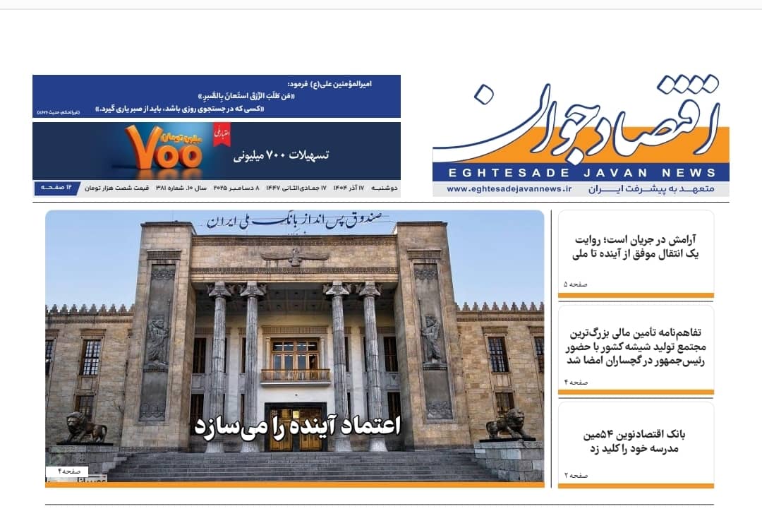 دوشنبه 17 آذر 1404 سیصد و هشتادو یکمین شماره از هفته نامه تحلیلی اقتصادجوان منتشر شد