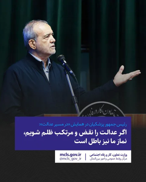 دکتر مسعود پزشکیان، در همایش «در مسیر عدالت؛ عدالت شغلی، توازن منطقهای» که صبح امروز ۲۲ مهر ۱۴۰۴، در سالن همایشهای وزارت تعاون، کار و رفاه اجتماعی برگزار شد، از تلاشها و جمعبندیهای حاضرین درباره عدالت، قدردانی و آن را بسیار با ارزش توصیف کرد و با تأکید بر اینکه عدالت باید در همه عرصهها بهصورت عملی و ملموس تحقق یابد، گفت: