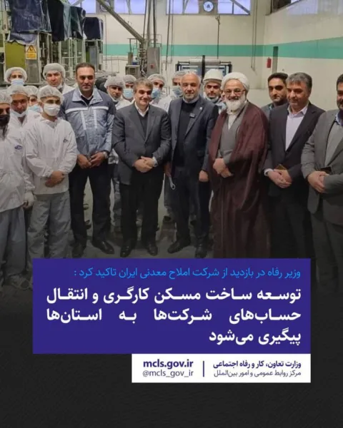 وزیر تعاون، کار و رفاه اجتماعی بر لزوم توسعه ساخت مسکن کارگری و انتقال حسابهای شرکت املاح معدنی ایران به استان سمنان تاکید کرد.