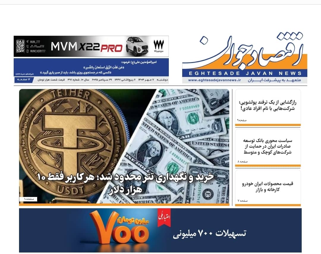 شماره 371 هفته نامه اقتصاد جوان در تاریخ هفتم مهرماه 1404 منتشر شد